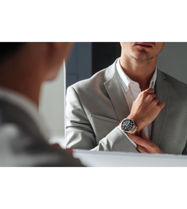 Drawing inspiration from the lines of Longitude, once the most crucial tool in navigating the seas, a large, classically formed case exhibits a complex yet precise piece of timekeeping mastery.