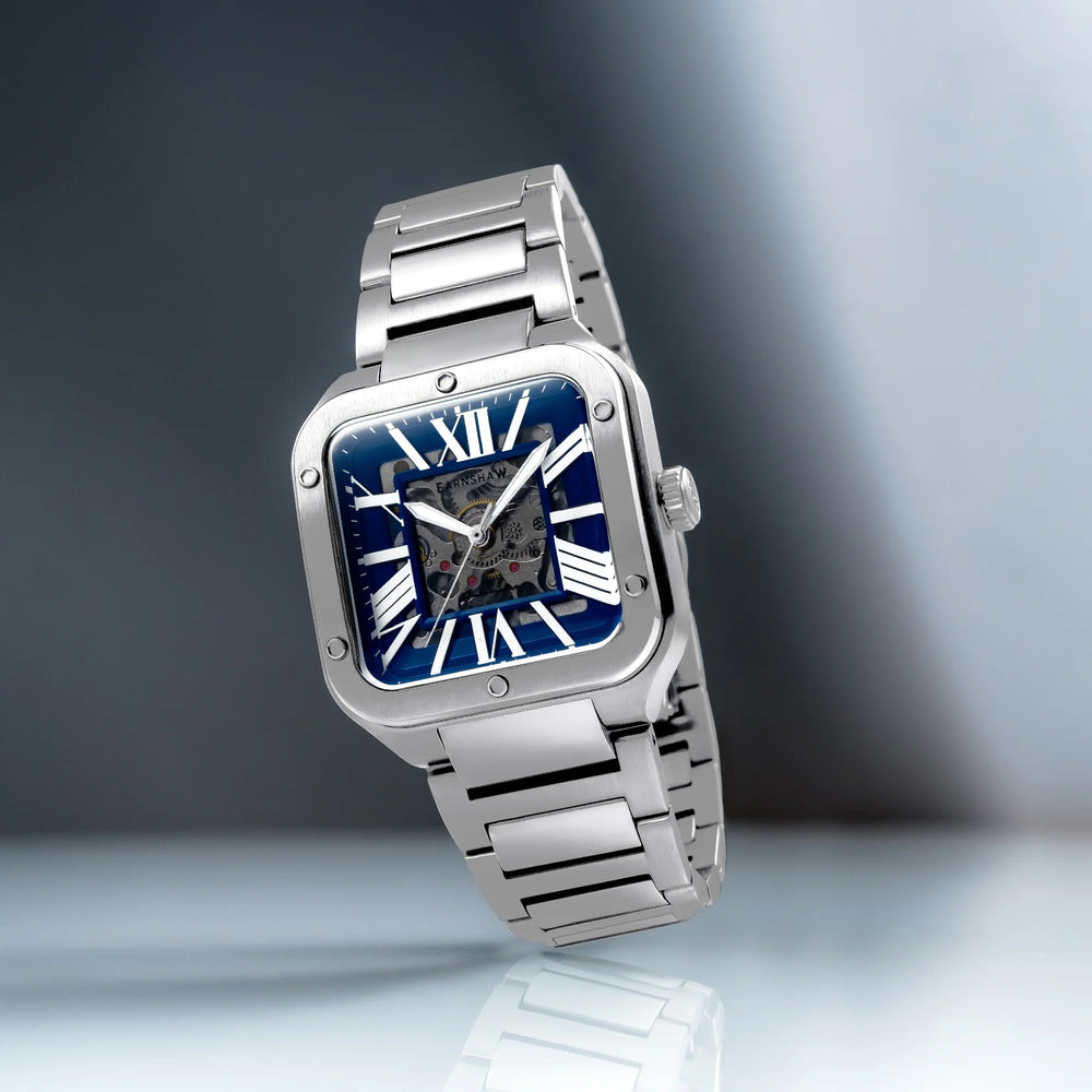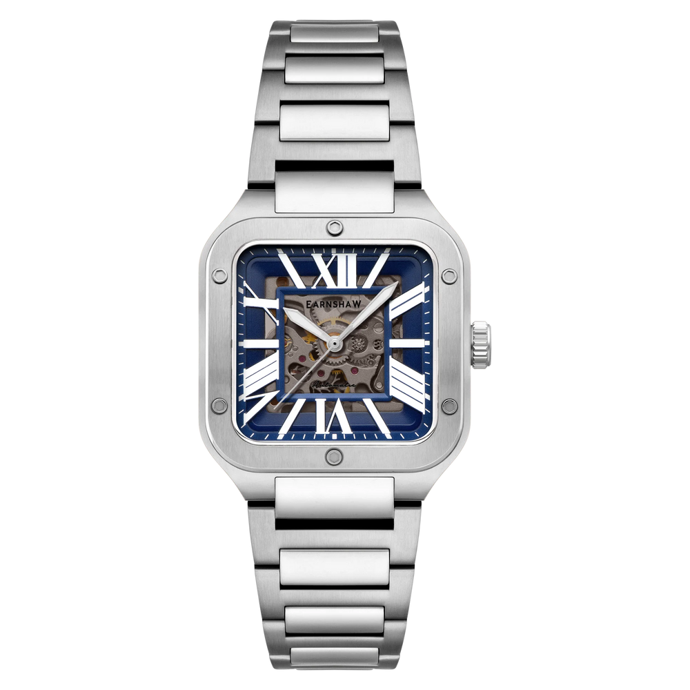 THOMAS EARNSHAW - OUR STORY: Named after the legendary watchmaker whose timepieces helped guide Charles Darwin's voyage around the world, a spirit of adventure and exploration lies at the heart of the Thomas Earnshaw ethos. Each collection of watches is named after an iconic explorer, location or vessel that perfectly embodies the values of Thomas Earnshaw: courage to go beyond the expected. MOVEMENT: The Lennox Skeleton Automatic is powered by a 20 Jewels Automatic skeleton 3 hands movement THE FINER DETAILS: Featuring a 36.5mm Stainless Steel Case , 24mm Stainless Steel Anti Reflection Coating Mineral Lens and Water Resistance Of Up To 5 ATM. WARRANTY : 2 Years International Warranty