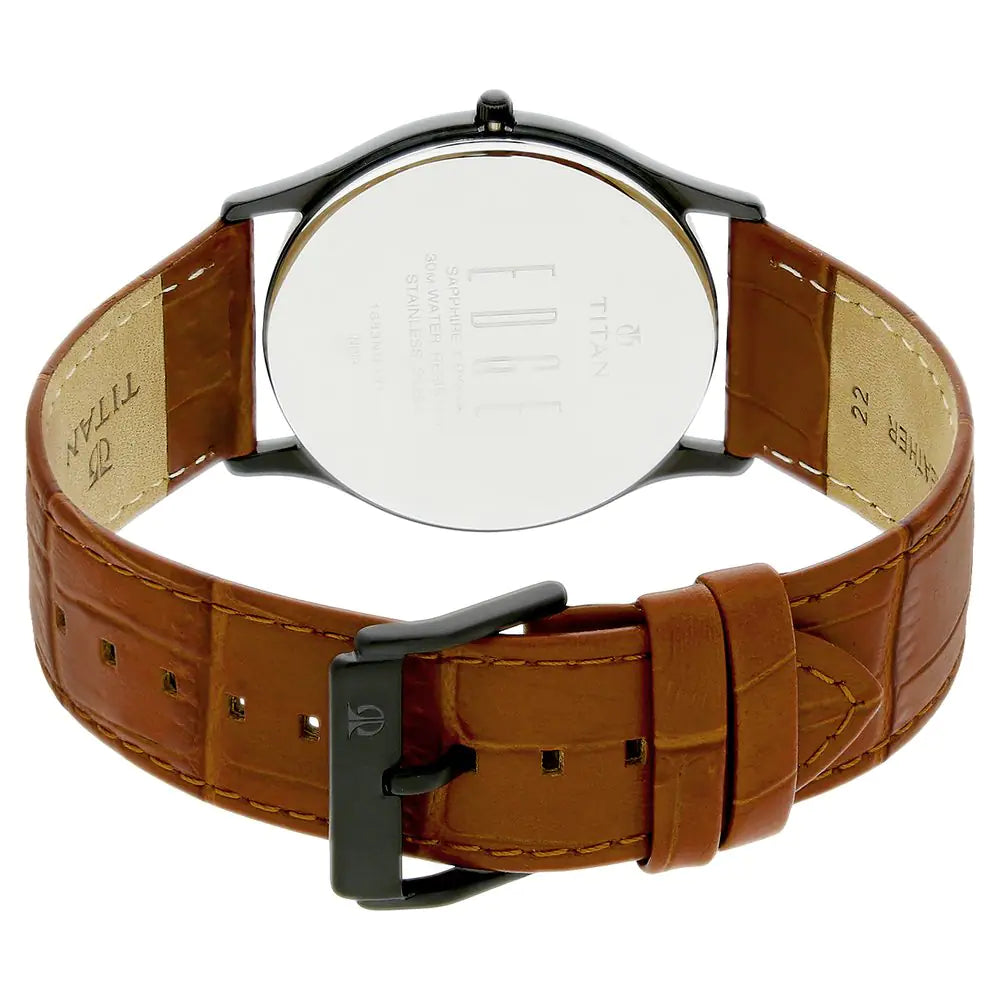 World's slimmest watch made by Titan, Edge, is now available with a brand new feature of Date display. It is a feat to be able to incorporate additional Date window in a case this is known for its slimness. Your favorite watch is even more endearing now with this new function. So not only now sport the chic look , make it work better for you with its new date display. A sign of efficiency and elegance for sure! This Edge watch comes with a brown dial and a black croc leather strap with a buckle closure. The watch uses a Saphire crystal glass that is highly break resistant and comes with a 2 year warranty on movement.