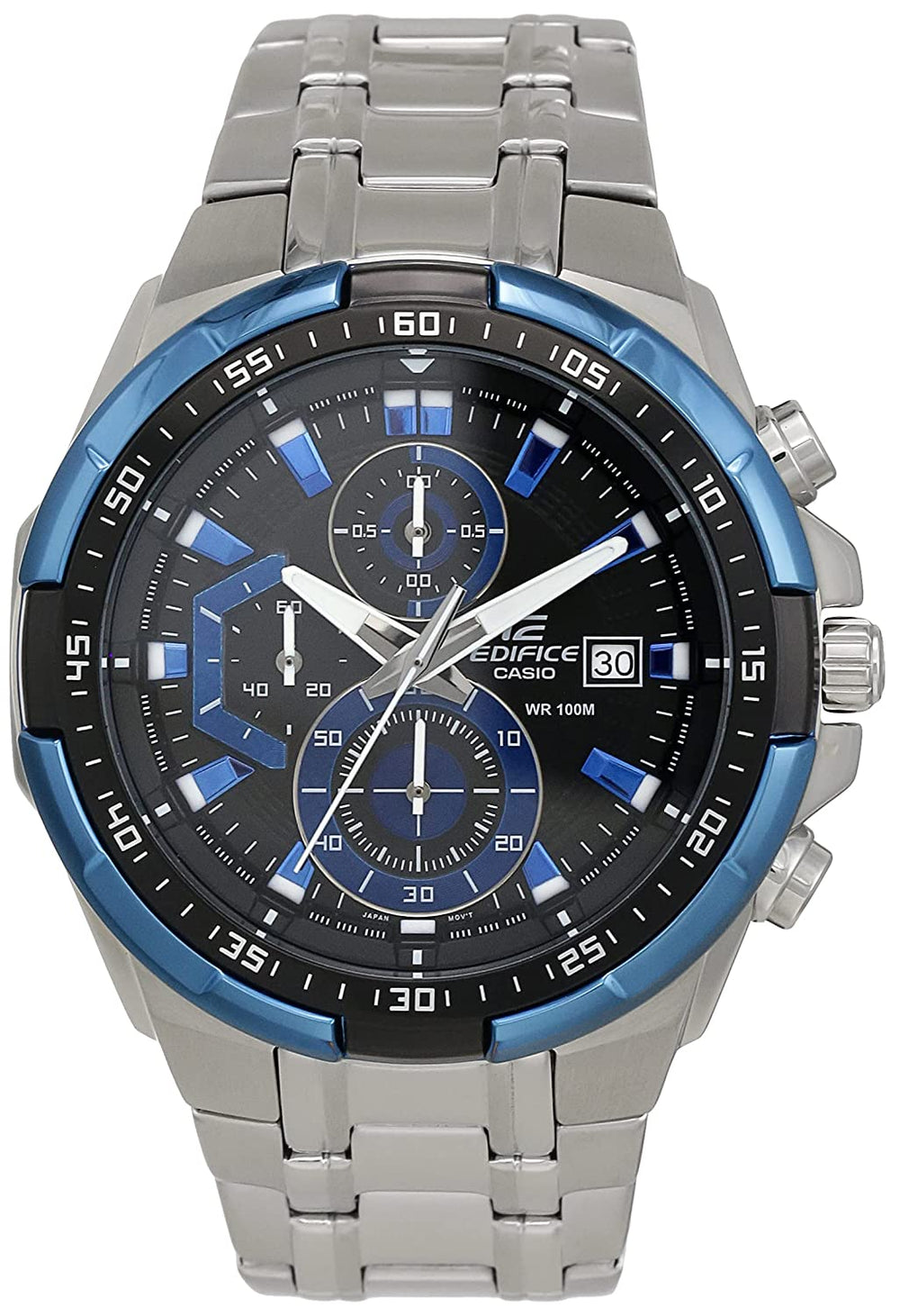 Multifunctional chronographs with detailed and layered designs that are inspired from motor sports alwaysspeaks Speed and Technology. Comes in unique Bezel designs, color combinations, Functions and Technology's. Most suitable for Formula Racing fans. All chronograph designs are inspired from the fast formularacing cars. The dial design speaks of Dynamic desigg and advance technology inspired from motor sports. The dial design helps in provding detailed infomation while adding dynamism and technology to it's deisgn. This results in a dynamic and complex design of Edifice Chronograph Watches.