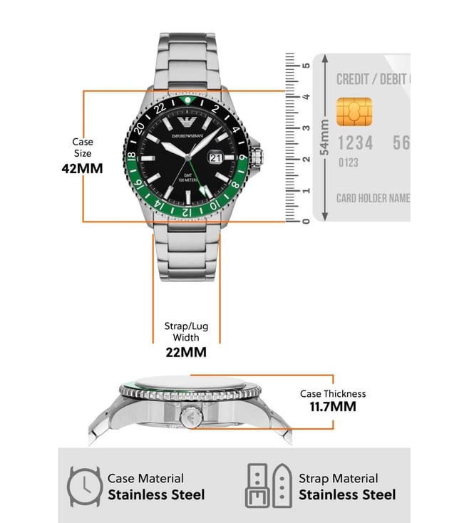 Sophistication meets simplicity in this wristwatch from Emporio Armani. The watch dial is protected with mineral glass and is water resistant up to 100 m. The timepiece works on a quartz movement. It is a must-have accessory for trendy individuals.
