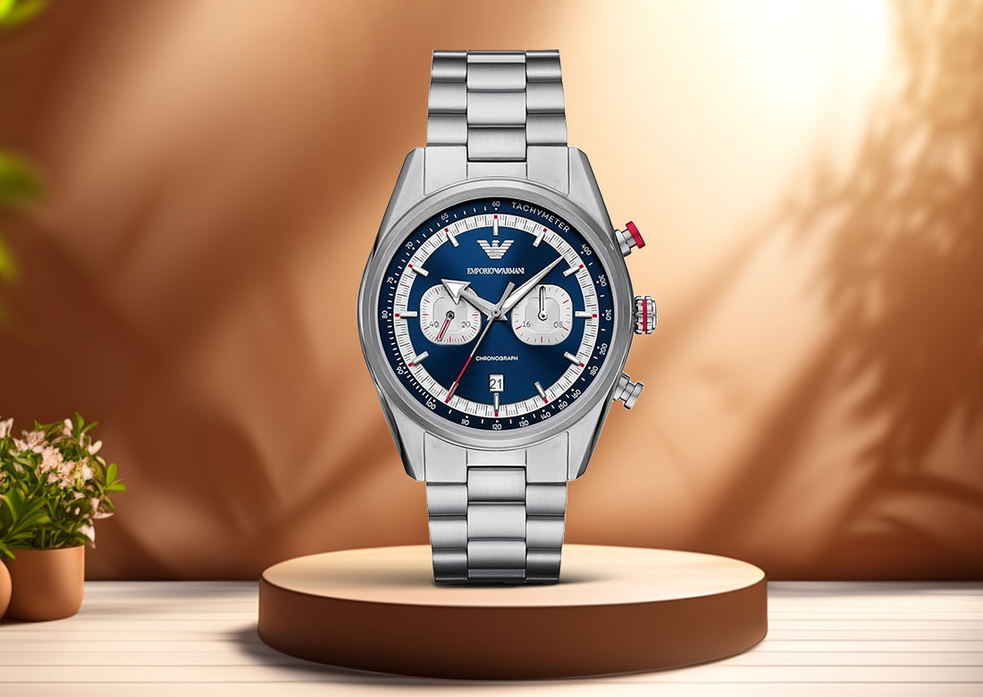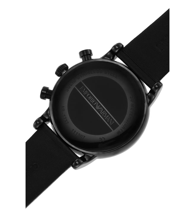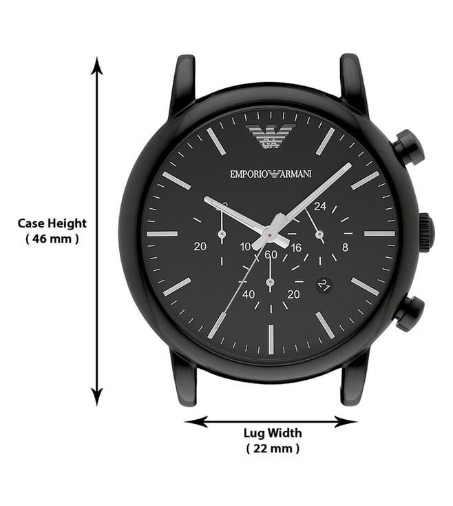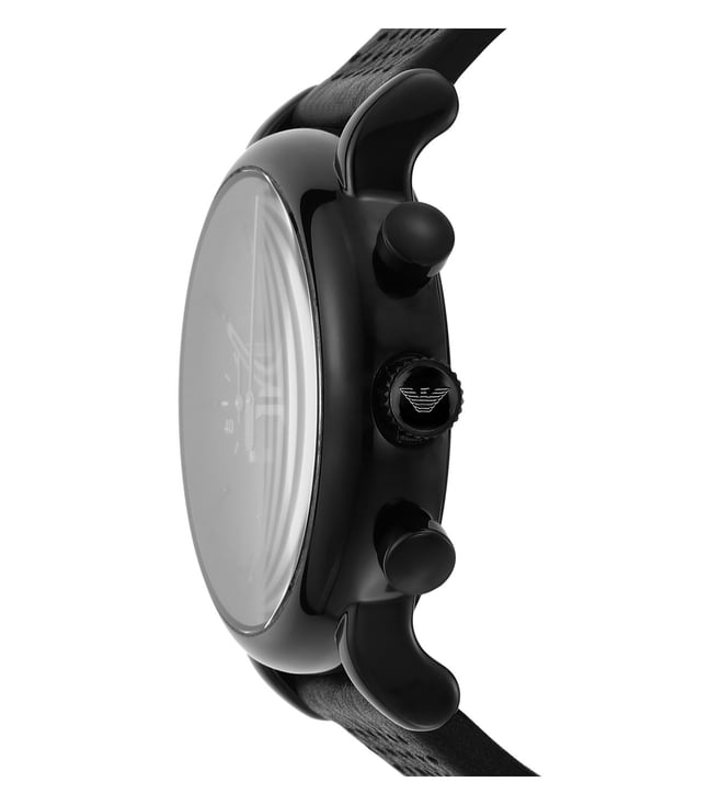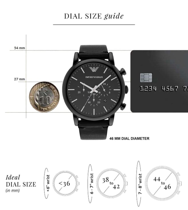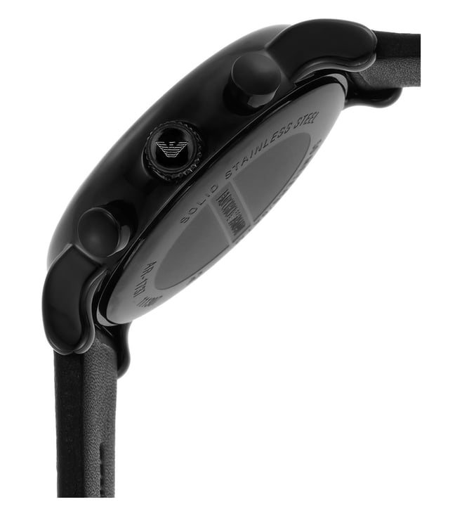 Accessorize your wrist with this mens analog watch from Emporio Armani and make a style statement. The black round dial is protected by a mineral glass. The genuine leather strap comes in a black hue that further elevates the look of the timekeeper. Besides, it is completed with a buckle clasp to ensure a secure fit on the wrist.