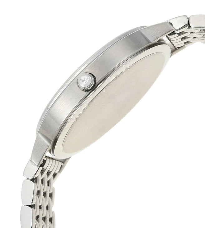 Enhance your sense of style by wearing this trendy AR11112 silver Analog Watch from Emporio Armani. Featuring a round dial with quartz movement, this watch is an excellent timekeeper. Moreover, this watch has a stainless steel strap with a robust clasp for a secure fit.