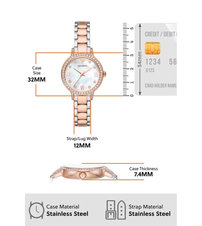 Intricately detailed and stylish, this watch from Emporio Armani is specially made for urban individuals. This 32 mm watch features a glossy dial and the case is elevated with crystal detailing. Functional on a quartz movement, it vaunts plain three hands. This 50m water-resistant watch ensures to be your timeless possession.