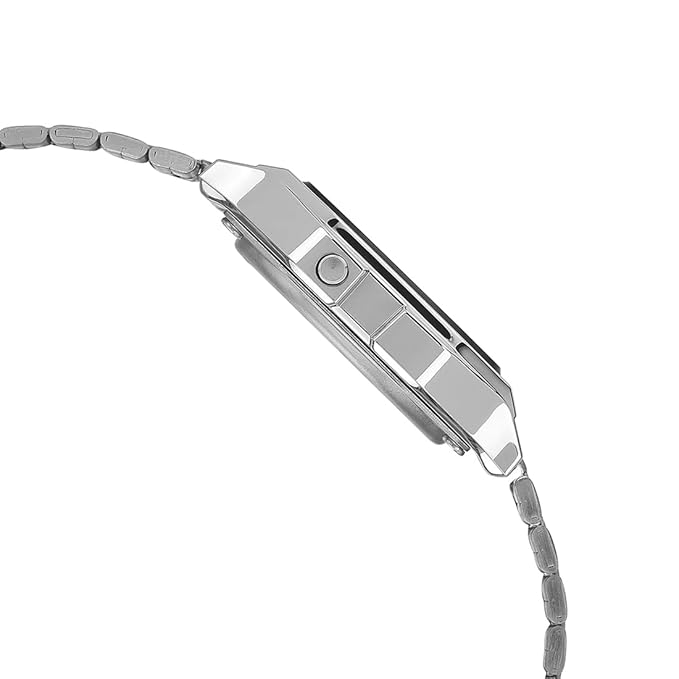 Get hold of this stylish unisex's digital watch watch from the Vintage Series collection by Casio and make a distinct style statement. Secured by a , the square dial is housed in a 36.8 mm case. It exhibits chronograph and a crown for time adjustment. The stainless steel strap showcases a silver hue that uplifts the look of the watch. Moreover, it is fitted with a hook buckle clasp to ensure a secure fit on the wrist.
