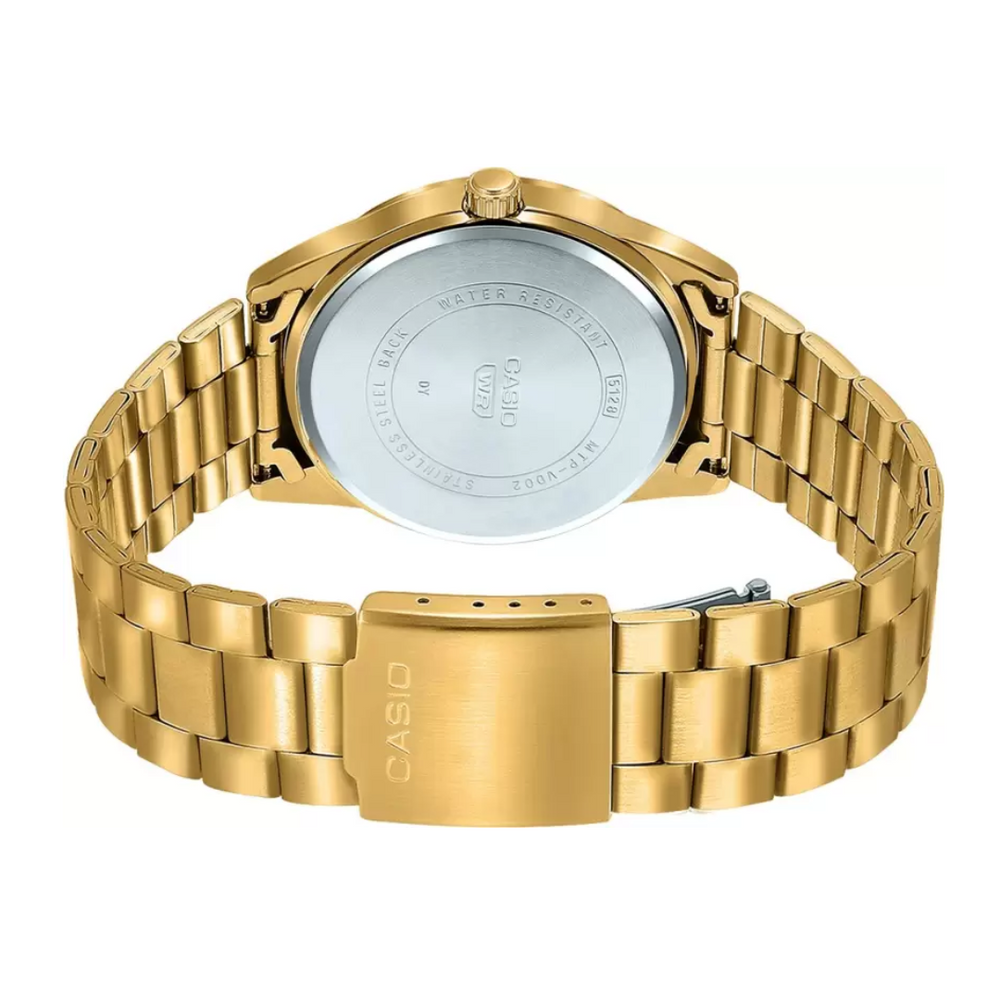 Enticer Men MTP-VD02G-1EUDF - A1951 The classic timepiece in a sporty design streamlined for casual sophistication. The minimalist analog designfeatures a handy date display at the 6 o'clock position. Water resistance for daily use frees you from worry when washing up or out in the rain. All your choice: The metal link band comes in silver, black, or gold. Or opt for the leather band in brown, black, blue, or green. Both with watch faces in plenty of special colors so you can pick the perfect one for your personal style.