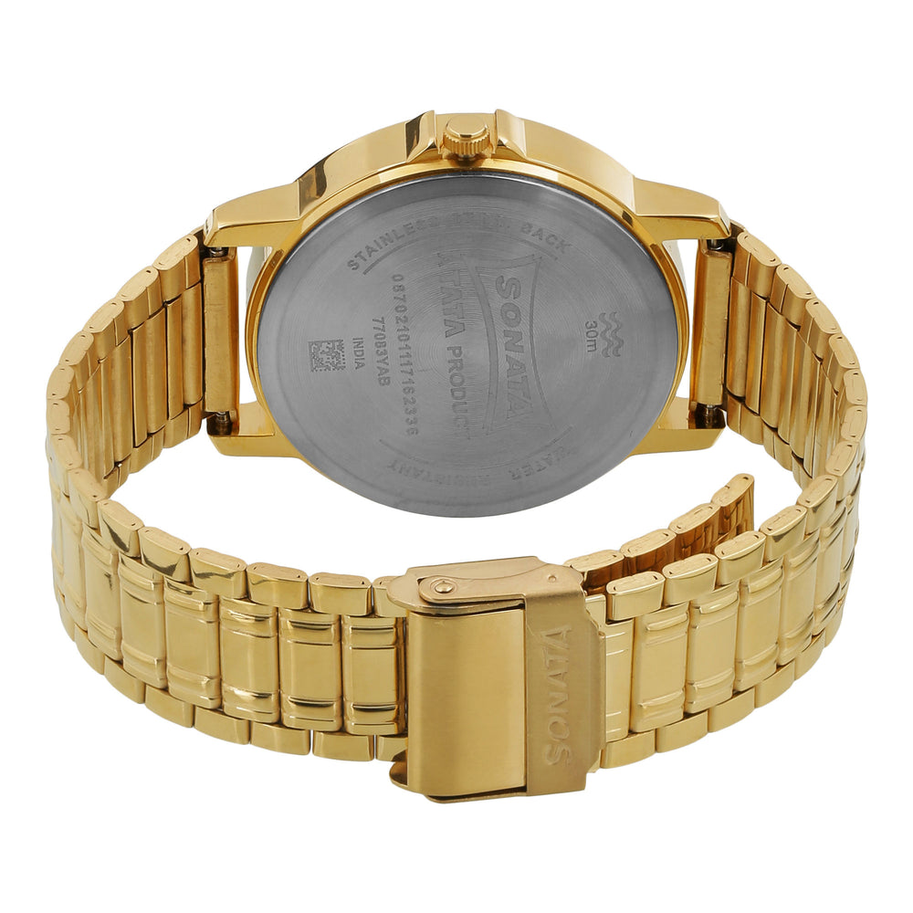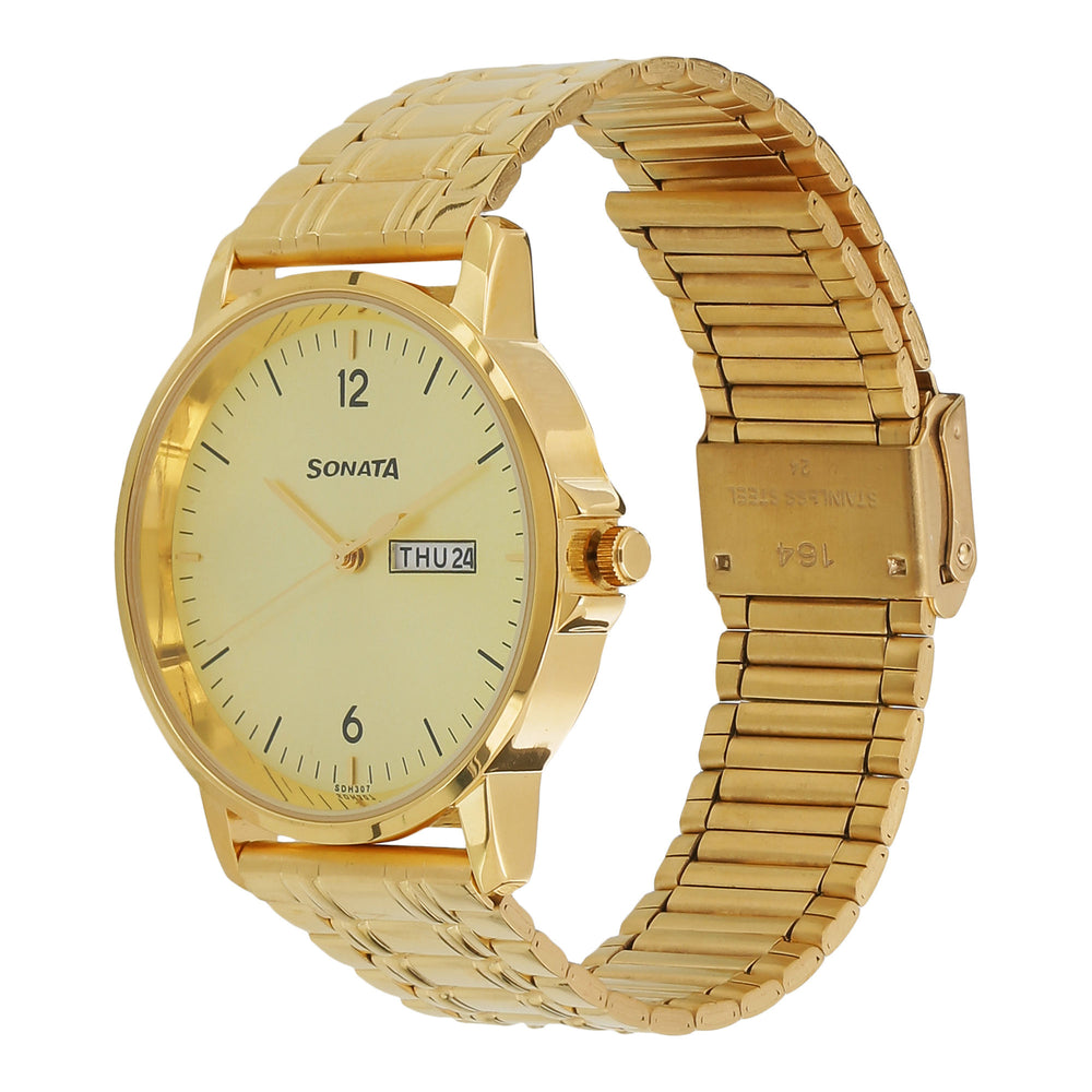 Sonata Essentials Champagne Dial Stainless Steel Strap - 77083YM03