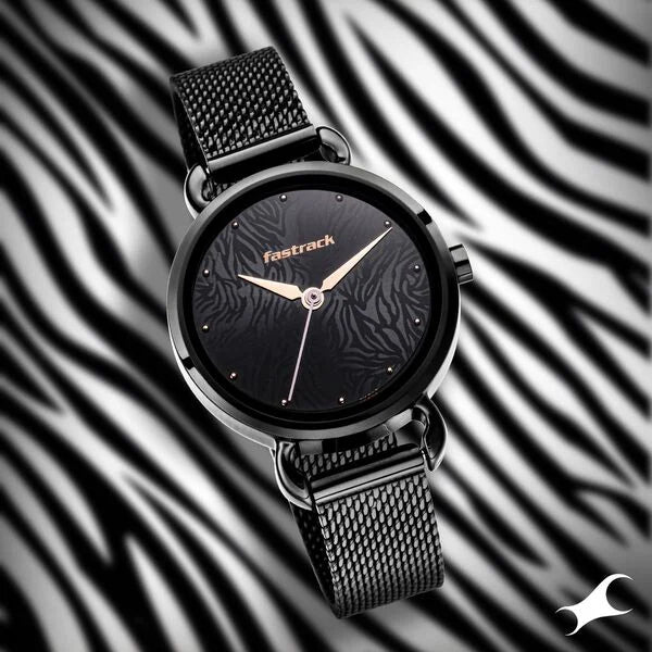 Fastrack Animal Print Quartz Analog Black Dial Stainless Steel Strap Watch for Girls nr6221nm02 / 6221nm02