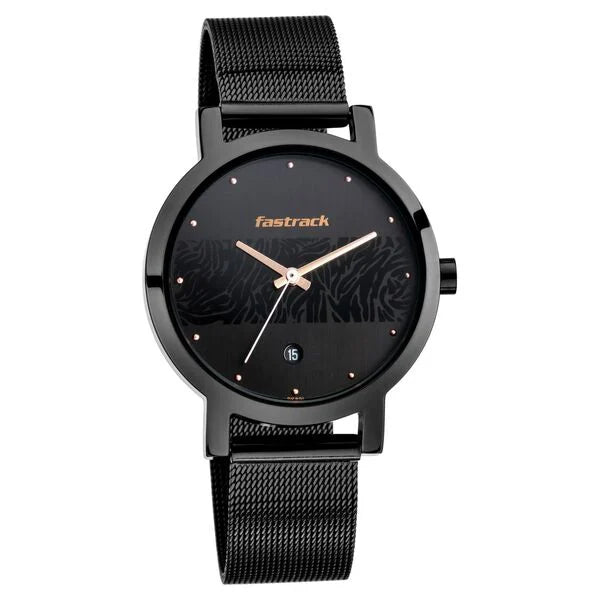 Fastrack Animal Print Quartz Analog with Date Black Dial Stainless Steel Strap Watch for Girls 6222nm01