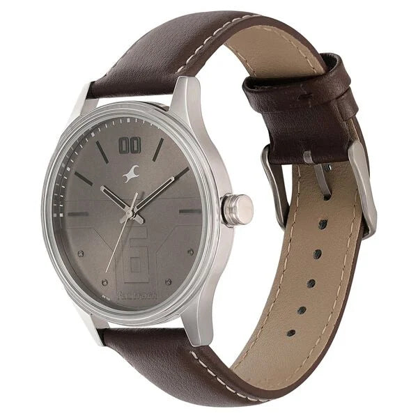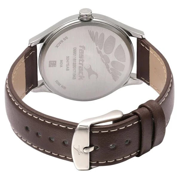 Impress all those around you by donning this analog watch from Fastrack. Encased in a 40.7 mm case, the brown round-shaped dial, features a plain 3-hand functionality, quartz movement and a crown for time adjustment. The leather strap comes in a brown hue that further elevates the look of the watch. Besides, it has a water resistance of up to 50 m and is completed with a buckle to ensure a secure fit on the wrist.