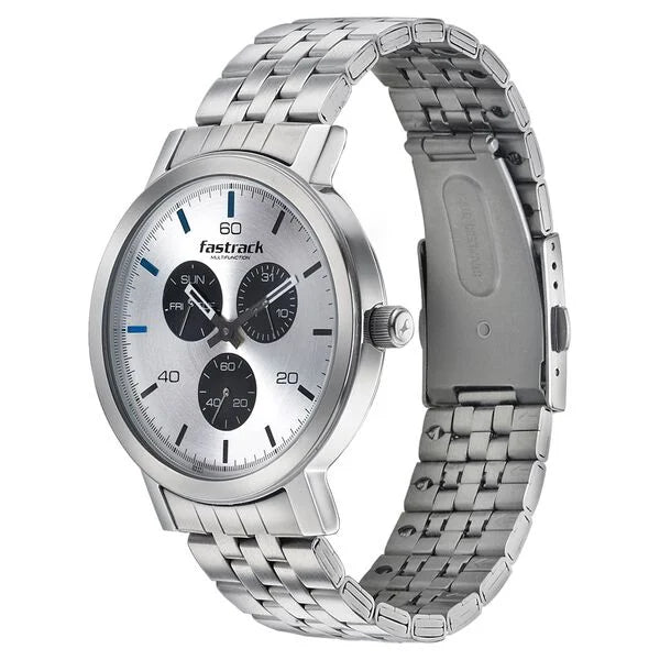 Fastrack Dial It Up Quartz Multifunction Silver Dial Stainless Steel Strap Watch for Guys nr3238sm01 / 3238sm01