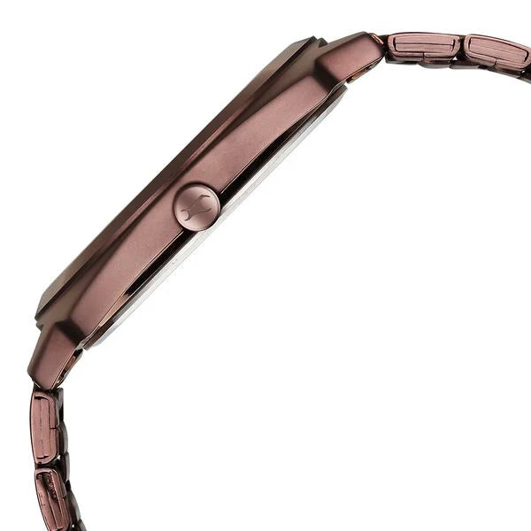 Make a bold impression with this sophisticated watch. The round dial features a classic 3-hand movement, with dot indices, along with a stylized face. Designed for both style and durability, the watch offers water resistance up to 50 meters and is equipped with a robust metal strap, secured with a fold-over deployment clasp closure for a comfortable fit