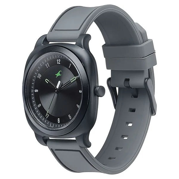 Add a classy touch to your attire by wearing this unisex's watch from the collection by Fastrack. The black round dial is protected by a sapphire glass. It features crown for time adjustment. The silicon strap flaunts a grey colour hue that accentuates the look of the watch. Besides, it is completed with a buckle clasp to ensure a secure fit on the wrist.