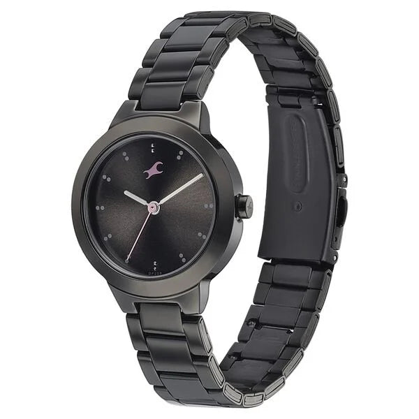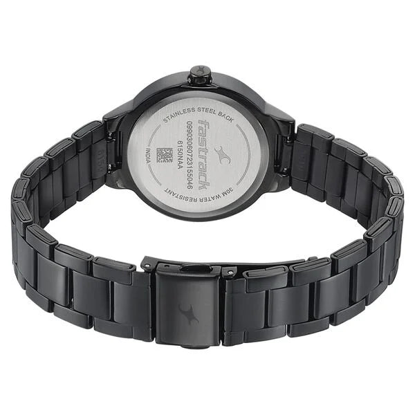 Fastrack Pulse Quartz Analog Black Dial Stainless Steel Strap Watch for Girls 6150nm01