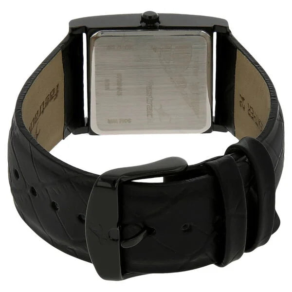 Blurring the boundaries between form and functionality, this women's analog watch from Fastrack is a must-have. Operated by a quartz movement, the black square dial is encased in a 35.63 mm case. It features plain three hands and a crown for time adjustment. The genuine leather strap showcases a black hue that uplifts the look of the watch