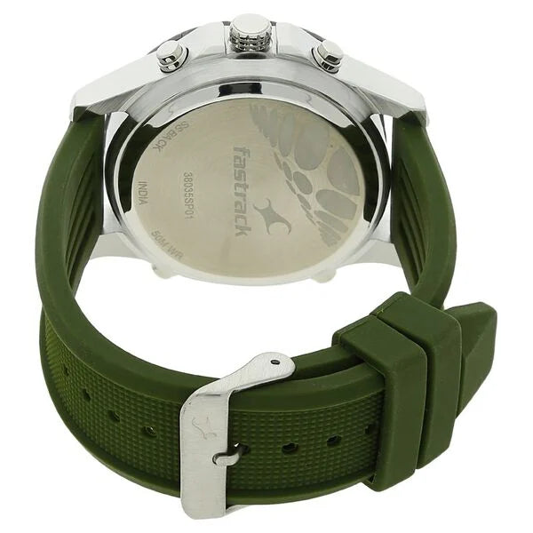 Designed to suit your needs, this men's analog-digital watch is brought to you by Sports collection by Fastrack. The strap of this multifunctional watch is made of premium quality silicon and is green in color. With a black round dial, this watch has a quartz type movement. The buckle clasp ensures utmost comfort and flexible hand movement. This watch is water resistant up to 50 meters. Wear it with your sport outfits to look smart.