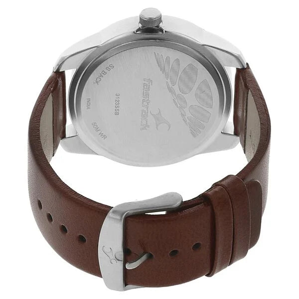 Fastrack Quartz Analog Silver Dial Leather Strap Watch for Guys NS3123SL02