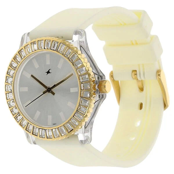 Fastrack Quartz Analog Silver Dial Plastic Strap Watch for Girls 9827pp01
