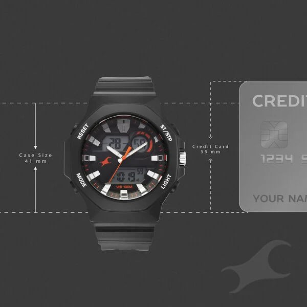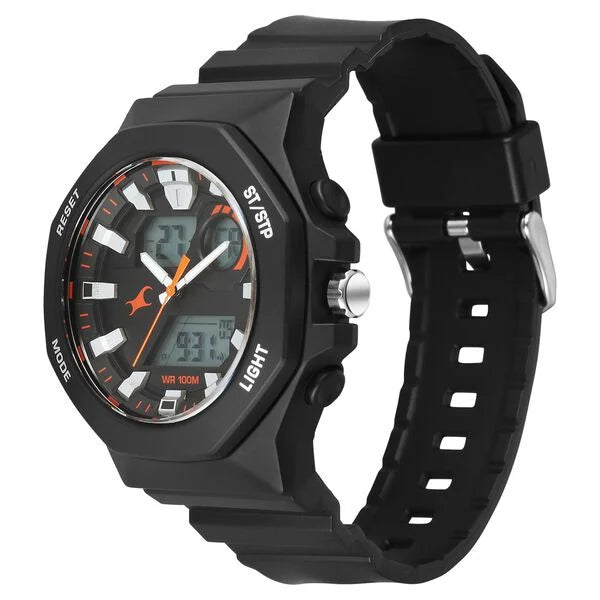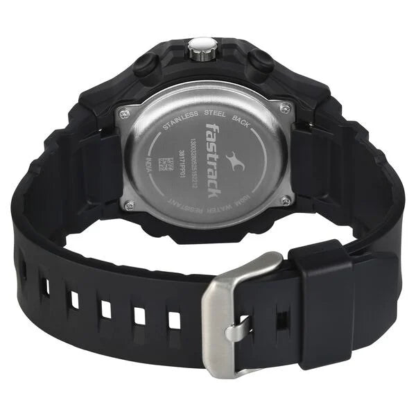 Fastrack Streetstyle Quartz Digital Black Dial Black PU Strap Watch For Guys 38171pp01