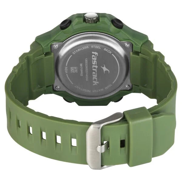 Fastrack Streetstyle Quartz Digital Black Dial Green PU Strap Watch For Guys - 38171PP03