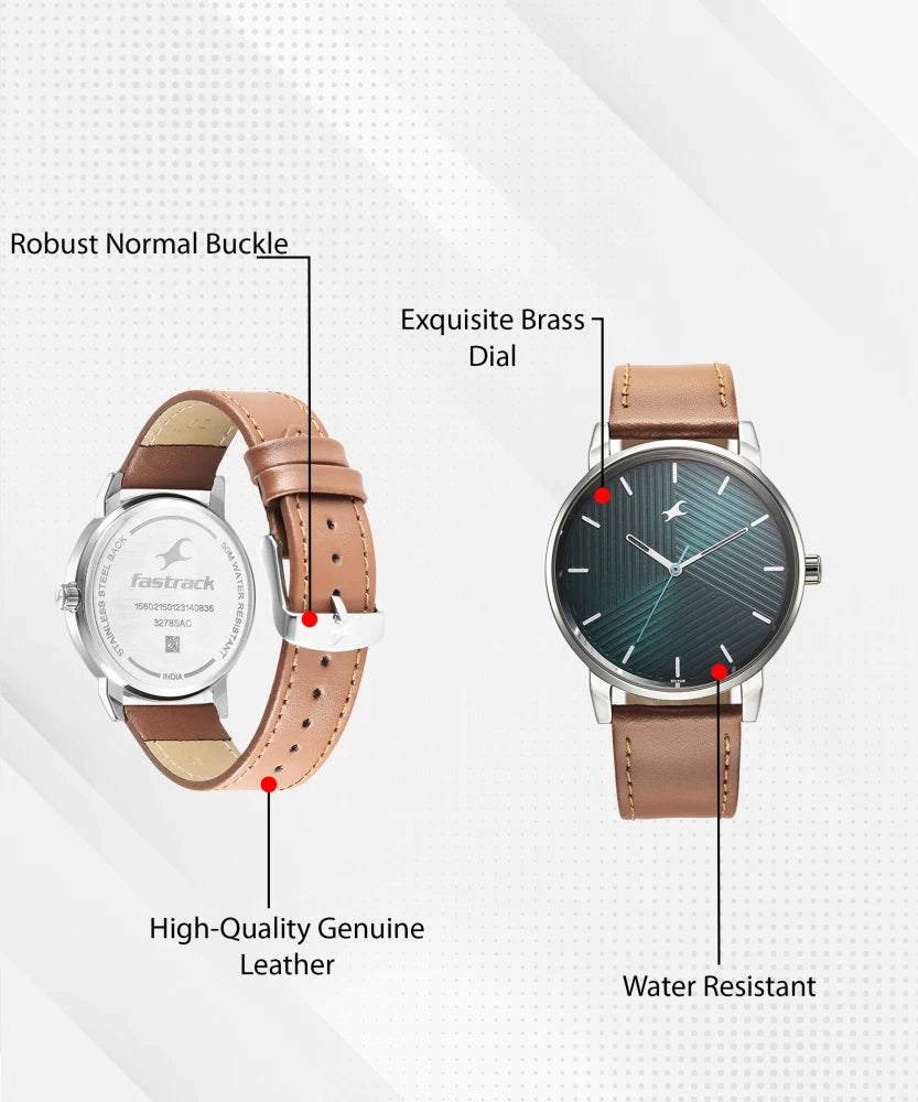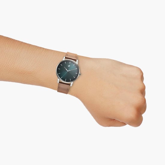 Fastrack Stunners Green Dial Leather Strap Watch for Guys 3278sl03