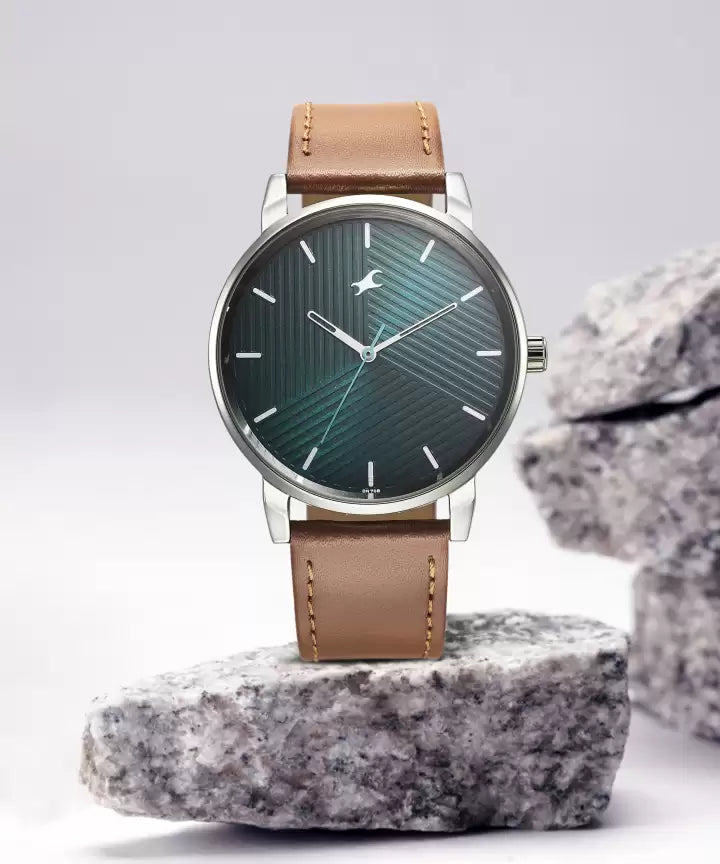 Designed to suit the preference of urban men, this analog watch from Fastrack is sure to make a style statement. The green round dial is protected by a mineral glass. The leather strap comes in a brown hue that further elevates the look of the timekeeper. Besides, it is completed with a buckle clasp to ensure a secure fit on the wrist.