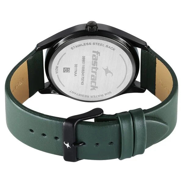 Fastrack Stunners Quartz Analog Black Dial Green Leather Strap Watch For Guys 3317nl01