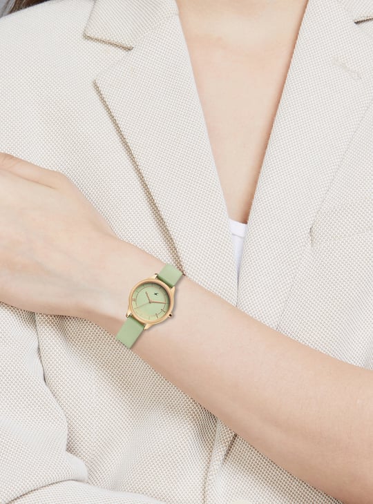 Designed to suit the preference of urban women, this analog watch watch from the collection by Fastrack is sure to make a style statement. Secured by a sapphire glass, the green round dial is protected in a case. It exhibits crown for time adjustment. The genuine leather strap flaunts a green hue that accentuates the look of the watch. Moreover, it is fitted with a Buckle clasp to ensure a secure fit on the wrist.