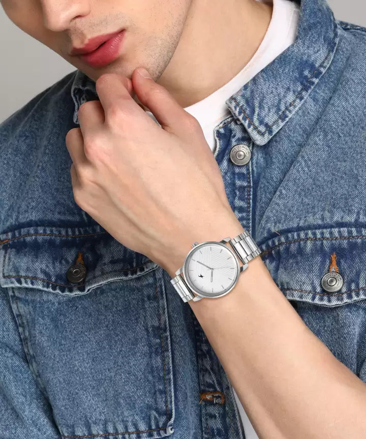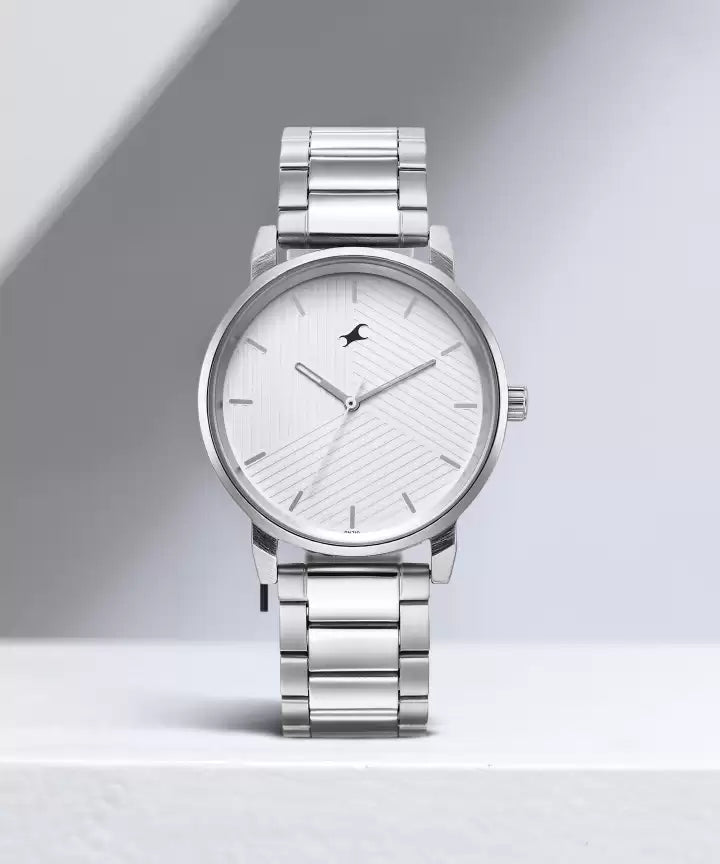 Designed to suit the preference of urban men, this analog watch from Fastrack is sure to make a style statement. The silver round dial is protected by a mineral glass. The stainless steel strap comes in a silver hue that further elevates the look of the timekeeper. Besides, it is completed with a fold-over push button clasp with safety clasp to ensure a secure fit on the wrist.