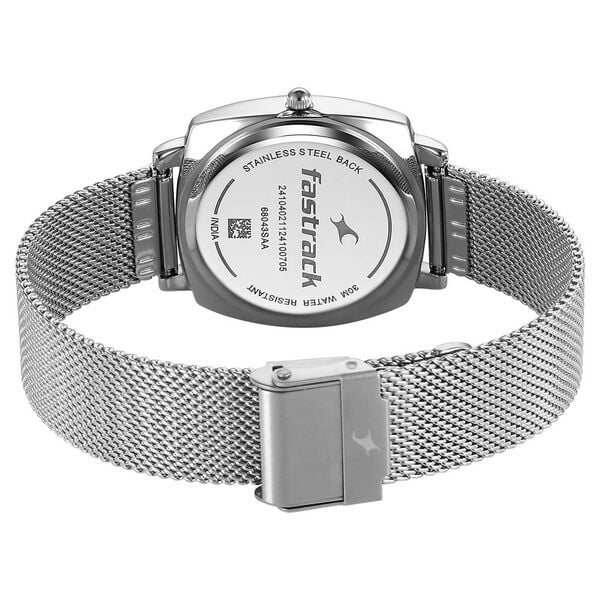 Designed to suit the preference of urban women, this watch from the collection by Fastrack is sure to make a style statement. Secured by a sapphire glass, the green round dial is protected in a case. It exhibits crown for time adjustment. The stainless steel strap flaunts a silver hue that accentuates the look of the watch. Moreover, it is fitted with a deployment clasp to ensure a secure fit on the wrist.