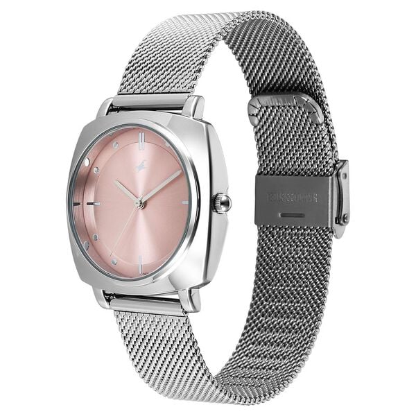 Fastrack Stunners X Quartz Analog Pink Dial Stainless Steel Strap Watch For Girls 68043sm02