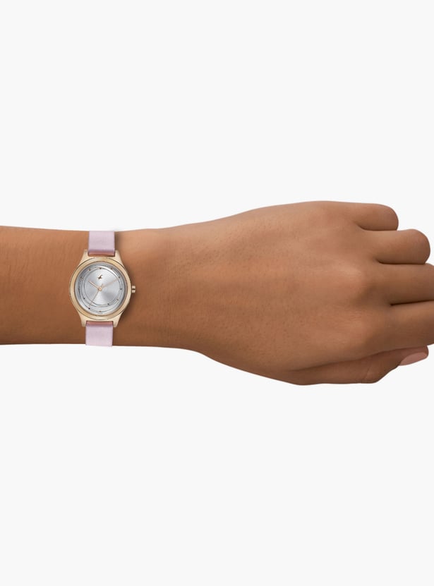 Designed to suit the preference of urban women, this analog watch from Fastrack is sure to make a style statement. The silver round dial is protected by a mineral glass. The leather strap comes in a pink hue that further elevates the look of the timekeeper. Besides, it is completed with a buckle clasp to ensure a secure fit on the wrist.