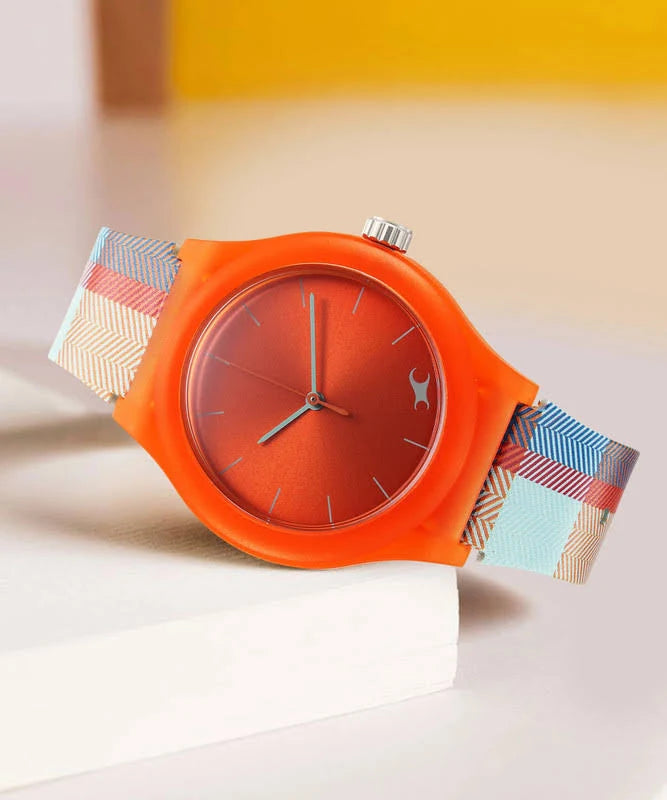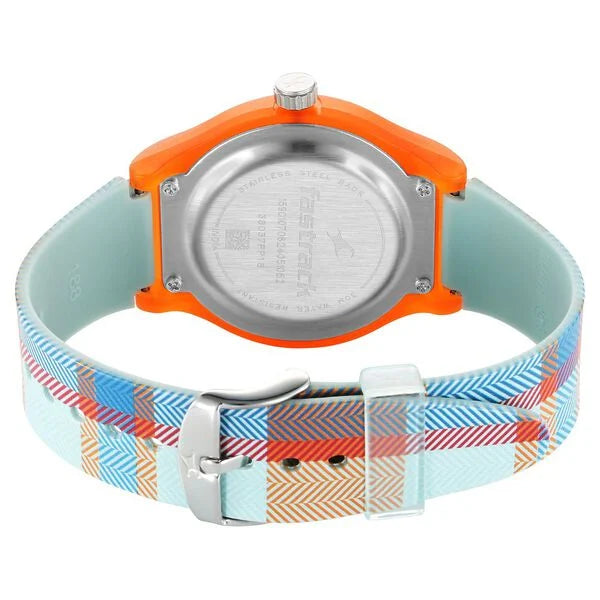 Designed to suit the preference of urban women, this watch from the collection by Fastrack is sure to make a style statement. Secured by a sapphire glass, the orange round dial is protected in a case. It exhibits crown for time adjustment. The silicon strap flaunts a multi hue that accentuates the look of the watch. Moreover, it is fitted with a buckle clasp to ensure a secure fit on the wrist.