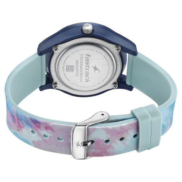 Fastrack Tie & Dye Quartz Analog Blue Dial Silicone Strap Watch for Girls ns68023pp08