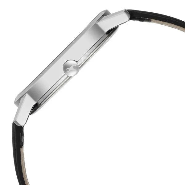 Add an edge to your everyday look with the Fastrack Camo Watch, a sleek fusion of bold style and practical design. The deep black dial features subtle embossed wave patterns, highlighted by luminous hands and indices for clear readability. A convenient day and date window ensures you're always in sync, while the polished silver-tone case and black leather strap deliver lasting comfort and durability. Whether for casual wear or night-outs, this analog timepiece elevates your wrist game effortlessly.