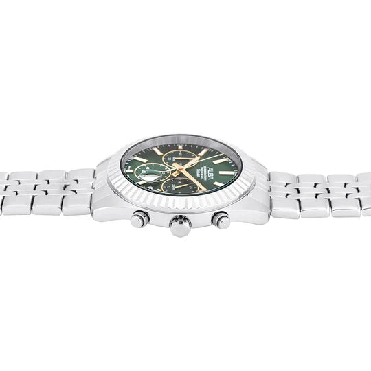 A must-have timepiece for all the watch aficionados, this men's analog watch watch from the active by ALBA will be a perfect pick. The green round dial is protected by a mineral glass. The stainless steel strap comes in a silver hue that further elevates the look of the timekeeper. Besides, it is completed with a fold-over clasp with double push button safety clasp to ensure a secure fit on the wrist.