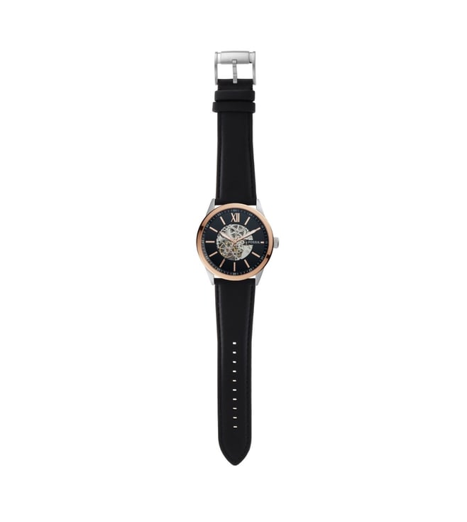 Lending a contemporary twist to an elegant design, this men's analog watch from FOSSIL is a must-have wrist essential. The black round dial is protected by a mineral glass. It has a crown for time adjustment. The genuine leather strap comes in a black hue that further elevates the look of the timekeeper. Besides, it is completed with a buckle clasp to ensure a secure fit on the wrist.