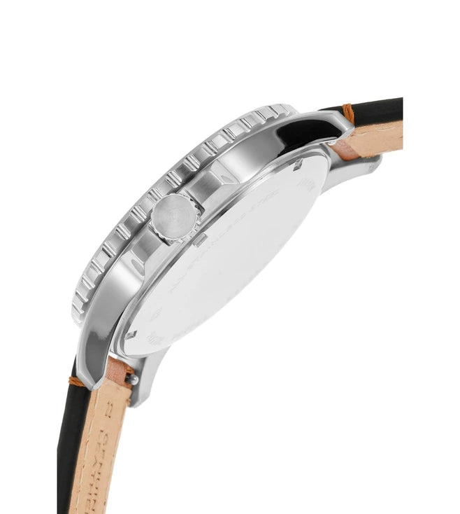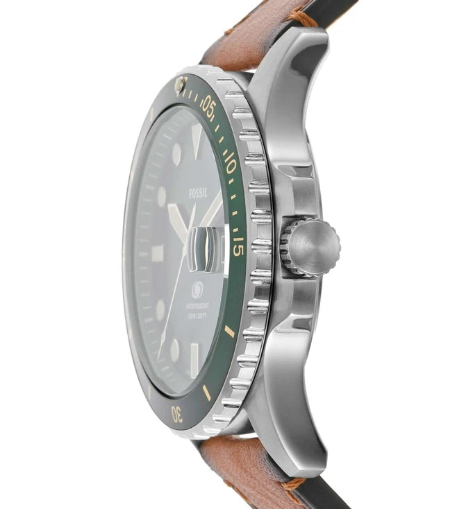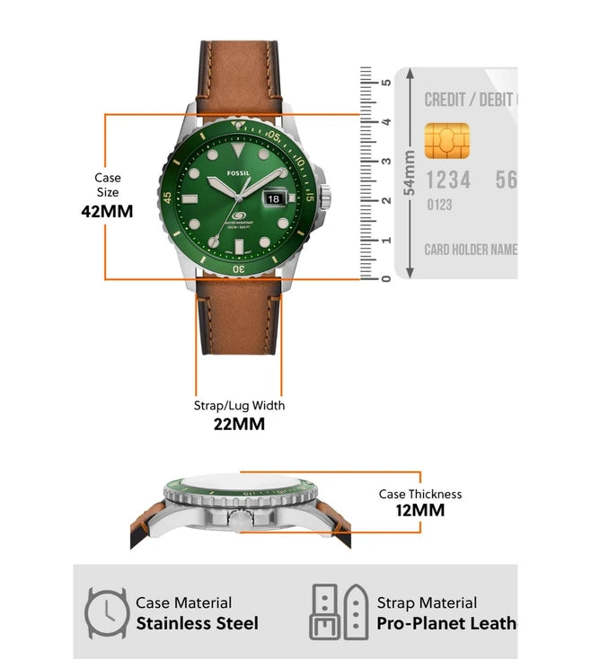 Look modish by donning this men analog watch from Fossil. Enclosed in a case, the green round dial is secured by a mineral glass. It displays plain 3-hand, and a crown for time adjustment. The strap showcases a brown hue that uplifts the look of the timepiece. Besides, it is finished with a buckle clasp that provides a secure fit on the wrist.