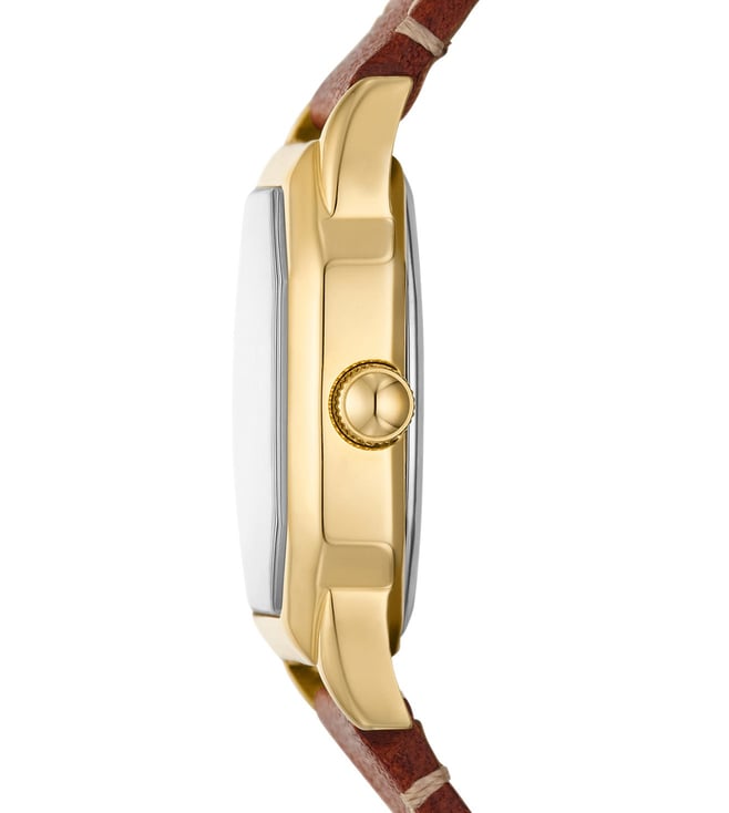 Inspired by a classic archival style, the Harlow watch blends past sophistication with modern elegance. This timeless timepiece features an octagonal-shaped case in polished gold-tone stainless steel, a textured cream dial, three-hand movement, and a brown leather strap.