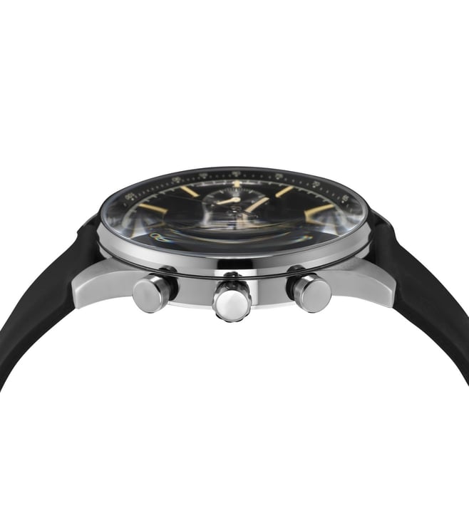 Give your timepiece collection a completion with this men's analog watch from FOSSIL. The black round dial is protected by a mineral glass. It has a crown for time adjustment. The silicon strap comes in a black hue that further elevates the look of the timekeeper. Besides, it is completed with a buckle clasp to ensure a secure fit on the wrist.