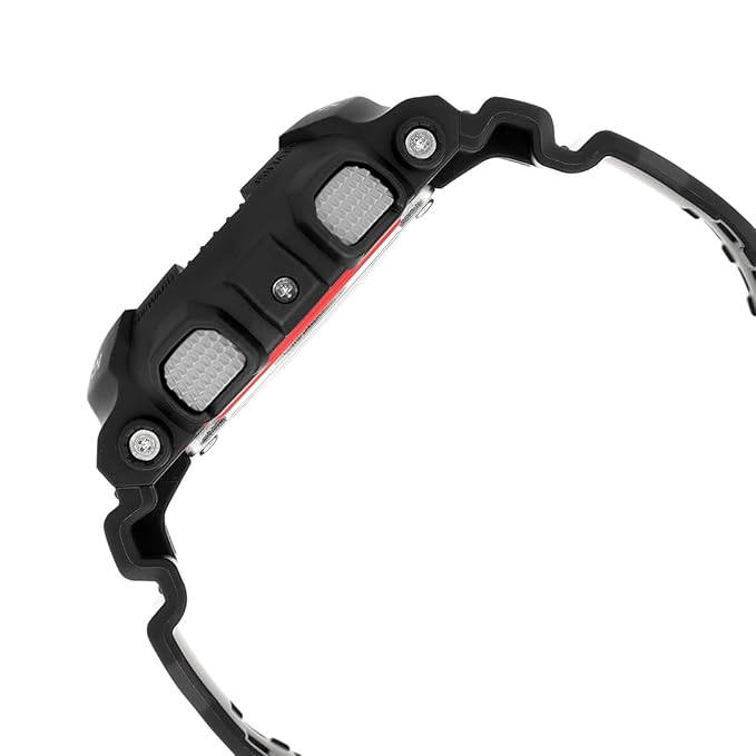 A stand-out with distinctive large case. The original color scheme is faithfully reproduced with touches of G-SHOCK red, representing the passion to take on challenges; blue, symbolizing excellent water resistance; and yellow, signifying outstanding shock resistance.