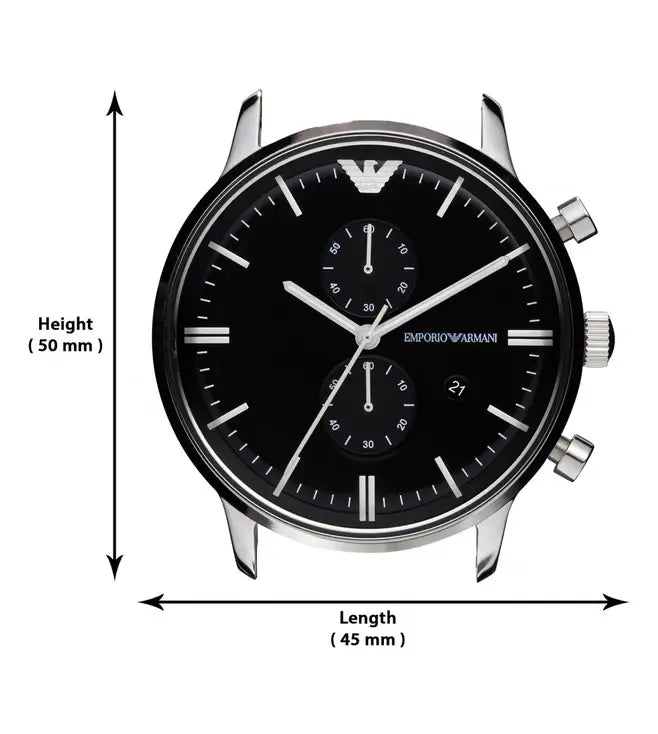 A must-have timepiece for all the watch aficionados, this men analog watch from Emporio Armani will be a perfect pick. Its strap vaunts a silver hue that enhances the look of the watch. Housed in a case, the black round dial is protected by a mineral glass. It showcases plain 3-hand, and a crown for time adjustment. Furthermore, it is complemented with a deployment clasp clasp that ensures a secure fit on the wrist.