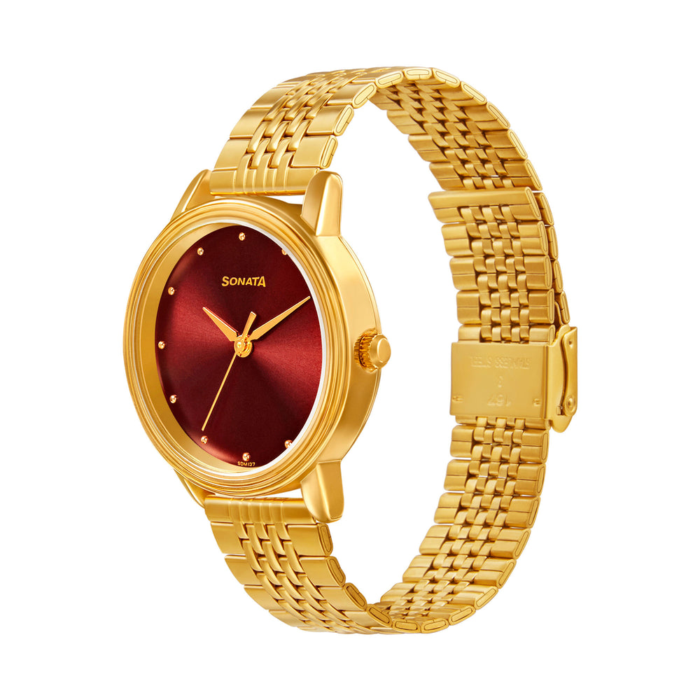 Gold Edit With Maroon Dial Stainless Steel Strap Watch NR8175YM03