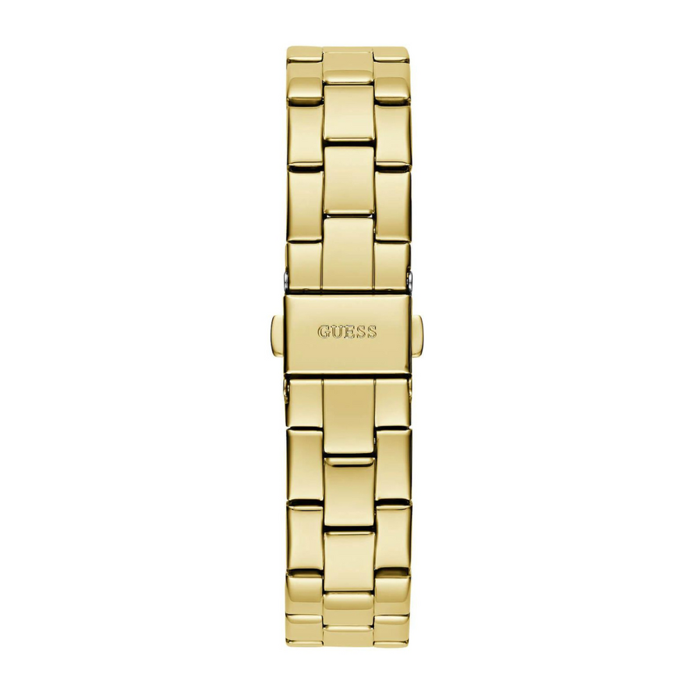 Stay on time and on trend with the Gold Tri Plaque Black Link Watch. This stylish watch features stainless steel material, and features a sophisticated black triangle plaque on the dial. It's perfect for any occasion, it's link design keeping you classy and put together. Stay chic and punctual with this must-have accessory.