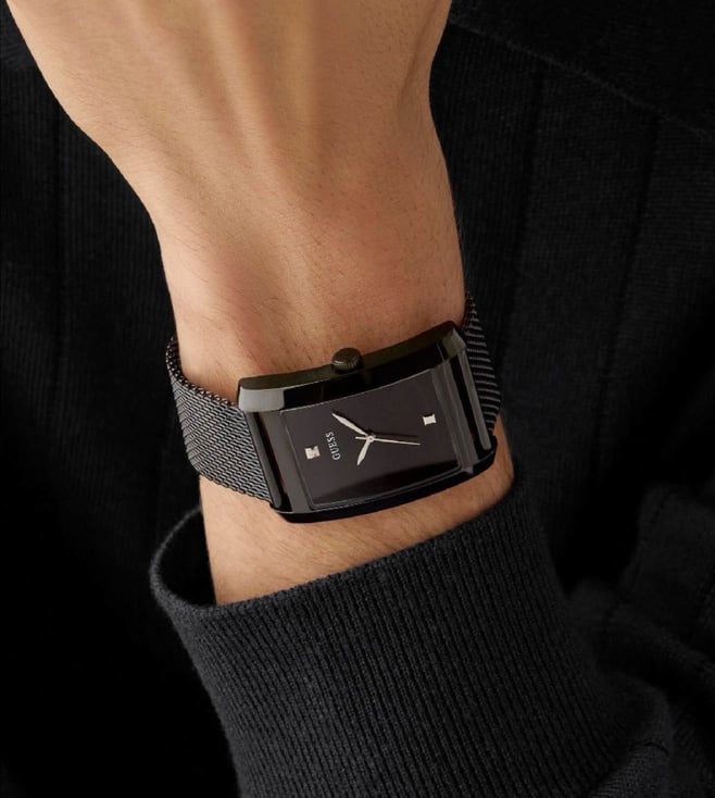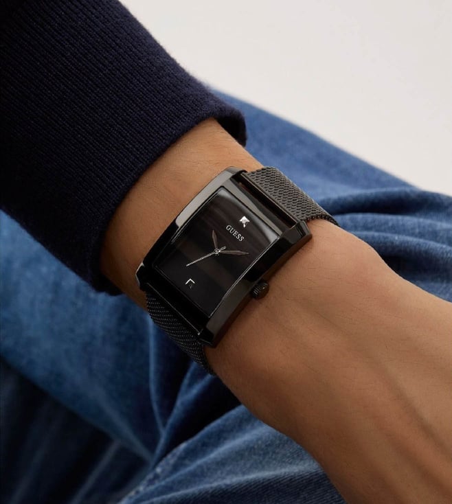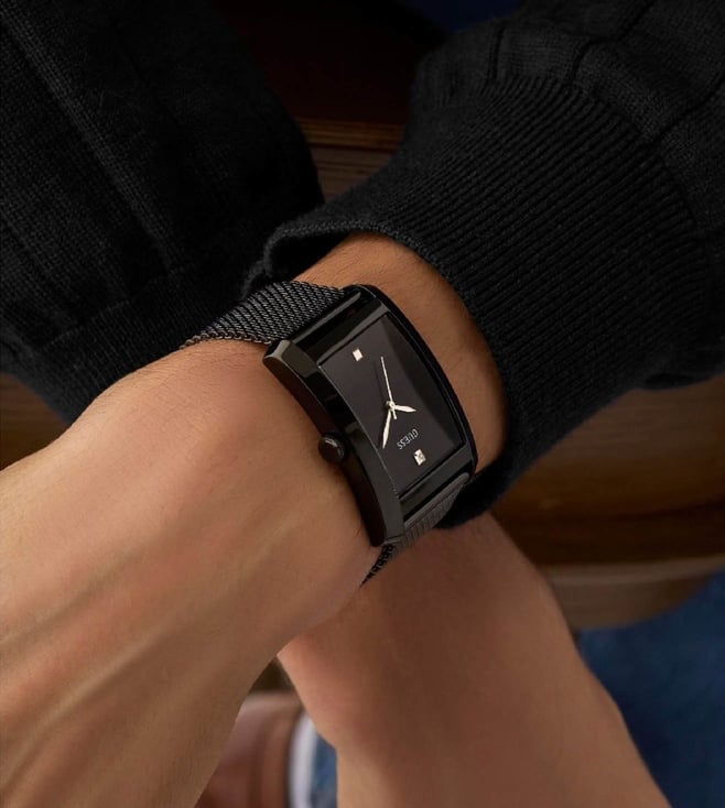 Add a stylish dimension to your look by wearing this men analog watch from Guess. Covered by a mineral glass, the green round dial. It has a crown for time adjustment. The stainless steel strap exudes a multi hue that accentuates the look of the timepiece. Moreover, it is fitted with a fold-over clasp with double push button safety clasp that ensures a secure fit on the wrist.