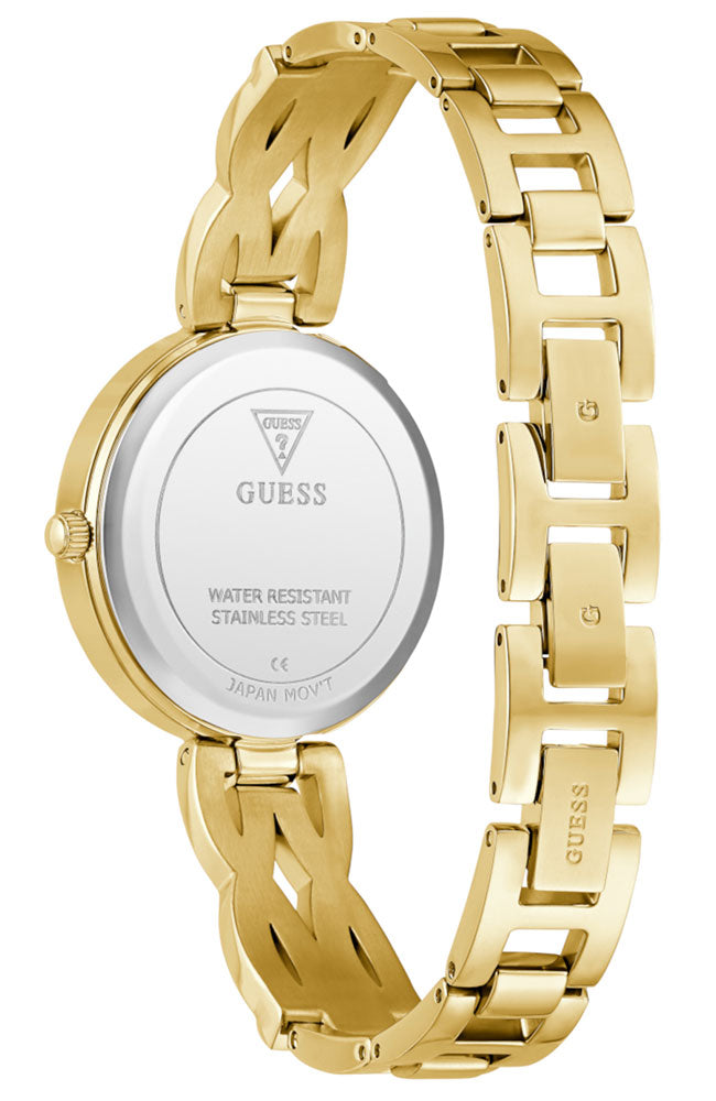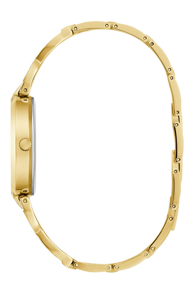 Guess-GW0868L2 is a women's watch by Guess from the Fashion series, which impresses with its glamour. It has a gold-colored envelope made of PVD-coated stainless steel, which gives it an elegant and modern character. The gold-colored dial, covered by mineral glass, exudes a subtle glow thanks to its glitter backlighting. The envelope's width of 32 mm makes the watch ideal for women who appreciate delicacy. The gold bracelet, also made of PVD-coated stainless steel, perfectly accentuates the whole, and the 30-meter water resistance ensures comfort in various situations. This stylish model will be a perfect addition to any styling.