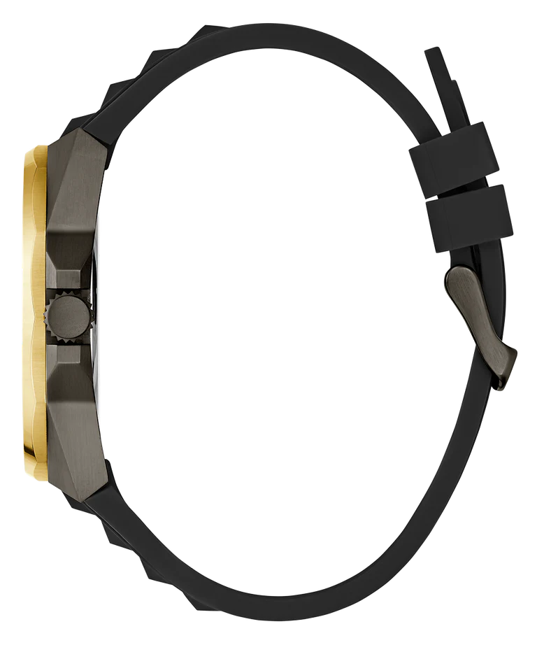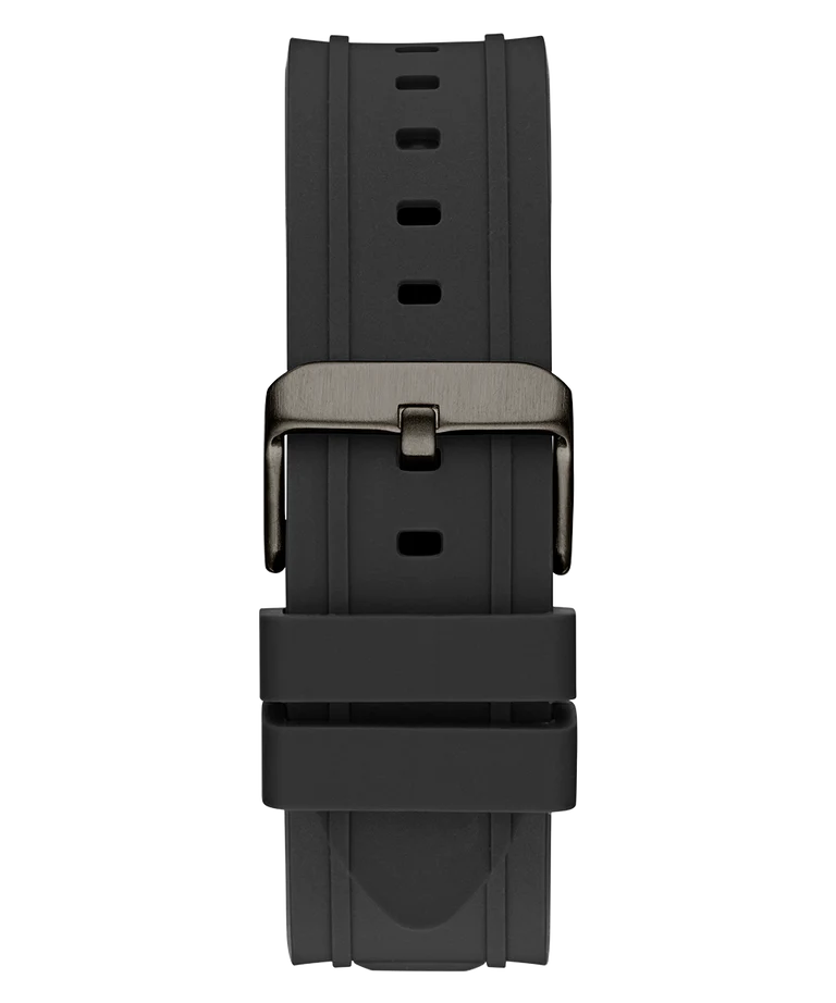 Reflecting the dynamism of modern lifestyles, this men analog watch from Guess will be a great addition to your collection of watches. Secured by a mineral glass, the black round dial. It has a crown for time adjustment. The silicon strap comes in a black hue that further elevates the look of the timekeeper. Moreover, it is equipped with a buckle clasp to ensure a secure fit on the wrist.
