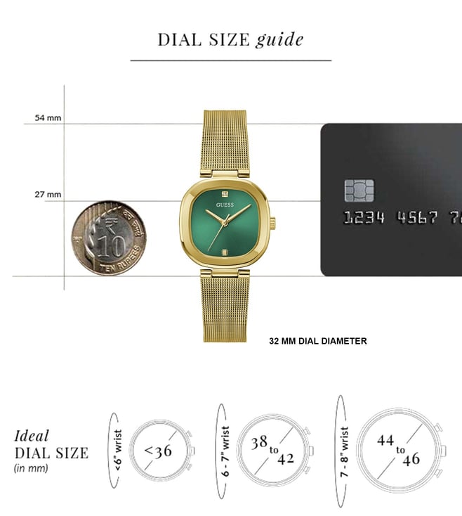 A must-have timepiece for all the watch aficionados, this women analog watch from Guess will be a perfect pick. It is mesh strap vaunts a gold hue that enhances the look of the watch. The green round dial is protected by a mineral glass. It has a crown for time adjustment. Furthermore, it is complemented with a deployment clasp that ensures a secure fit on the wrist.