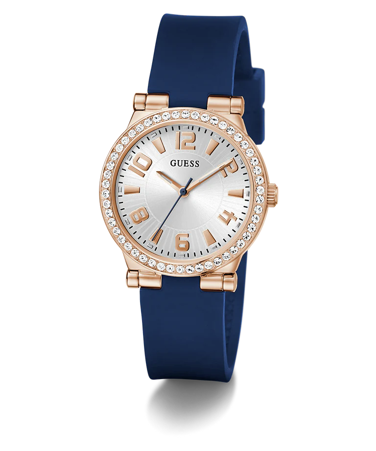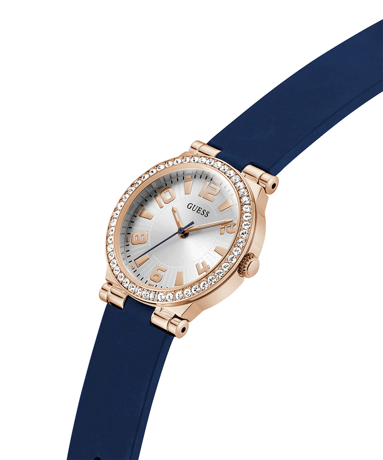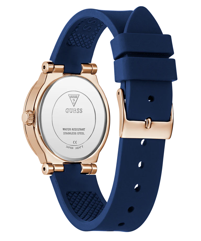 GUESS Ladies Blue Rose Gold Tone Analog Watch GW0844L3