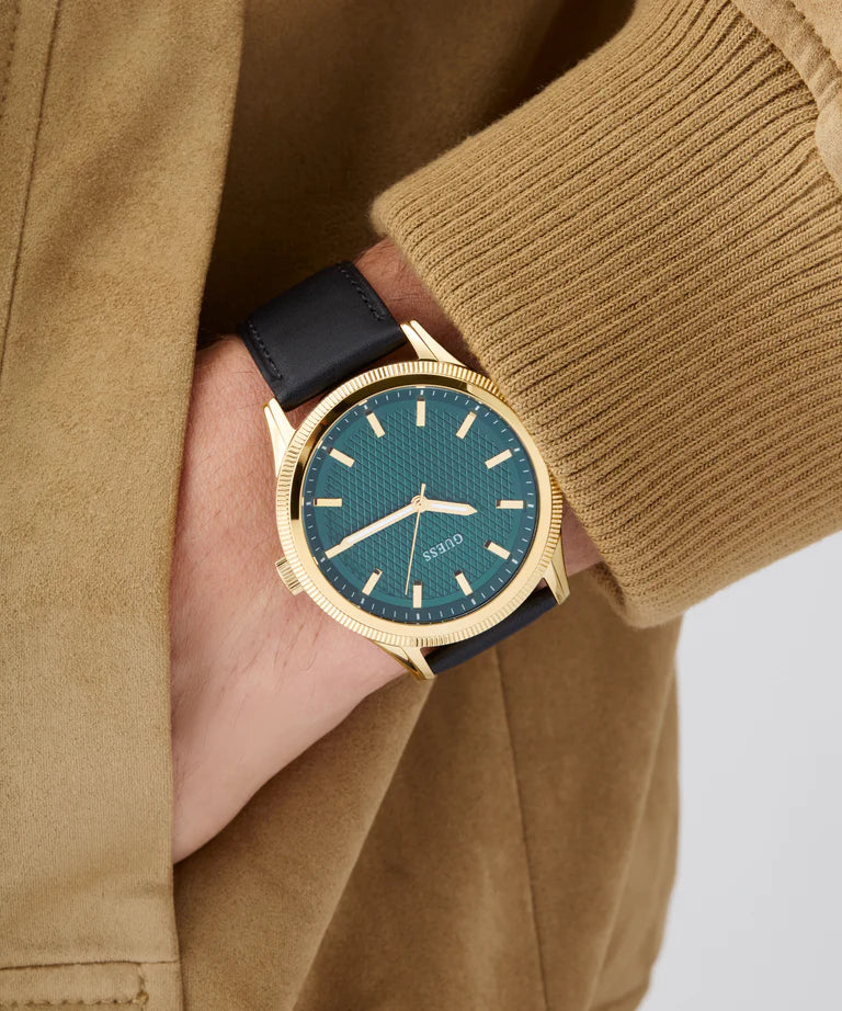 GUESS Mens Black Gold Tone Analog Watch GW0846G1
